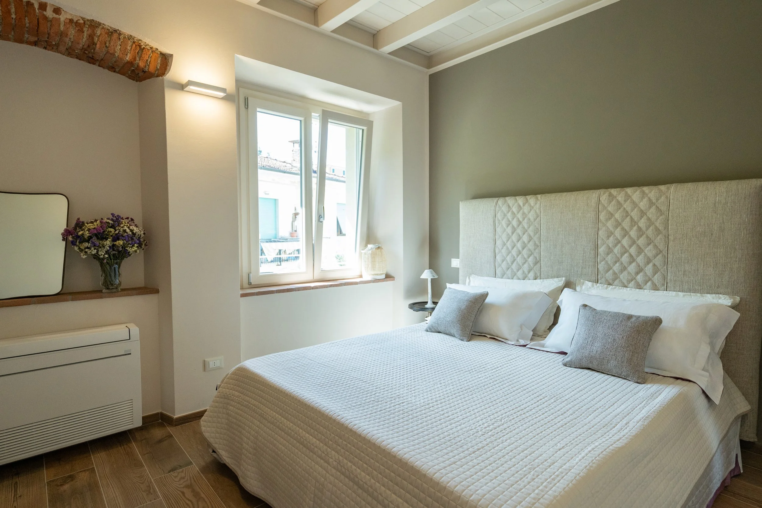 L’appartamento più ampio e panoramico della dimora. Gli spazi generosi lo rendono perfetto per famiglie o gruppi che desiderano un soggiorno elegante e silenzioso, nel cuore del borgo antico.